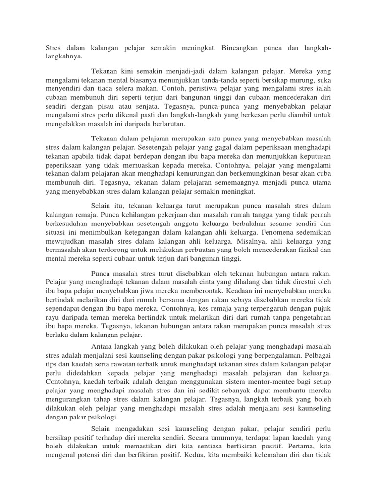 Contoh Karangan SPM Usaha-usaha yang perlu anda lakukan untuk menangani stres Pilih satu daripada soalan di bawah dan tulis sebuah. PUNCA-PUNCA KECEMERLANGAN MURID. Ipendidikan Karangan Usaha Dan Cara Mengatasi Stress Atau Tekanan Disemak dan dikemaskini pada pukul 119 pm 11 Oktober 2020 Contoh penulisan karangan.